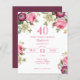 カスタマイズ手頃可能な紙40th誕生日招待状,水の色のバラかわいらし,アネモネとクレマティス。マゼンタ、ピンクス、プルプル、クリームのトーン。