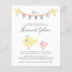 マ祝ママは、仮想オンライン赤ちゃんシャワーで長距離から行く。レトロなフレンドリーおもしろい予算の赤ちゃん女の子のシャワーの招待感じは、ソフトグレーのタイポグラフィと2つの黄色のベビーの鳥がパステルオレンジ、ピンクとミントグリーンのバンティングのバナーを持ち、発表"それは女の子だ! 母名が書トレンディーススタイリッシュクリプトに含まれる。可愛い黄色のママの鳥が小さなピンクの雛を連れて一緒にパーティー詳細の上を歩く。オンラインのシャワー詳細で簡単にパーソナライズできる。
