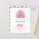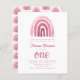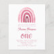 ピンクモダンの水の色のレインボーの要素とセリフのフォントを備えたインスパイアテーマでシックで最初の誕生日の招待。