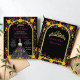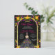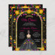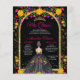 金ゴールドエレガントグリッターアーチとフローラプリンセスドレス15th誕生日キンセアニェラ招待状。