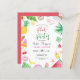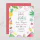 おもしろいとモダンカラフルの水の色の要素を含むsweet sixteenのためのシックで予算のプールのパーティー夏をテーマにした誕生日の招待状葉,ココナッツ,サングラス,パイナップル,季節,カメラ,花,アボカド,スイカ,ドーナツ,さくらんぼとカクテル飲料。
