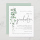 より小さいサイズ4.5 x 5.6インチ半光沢110ポンドの重量に代わるコストのBUDGETの値は、ポストカードと同様の厚さ(ただし、ポストカードとして使用するには適さない)。1枚につき1枚の招待状がある。バジェットユーカリプタススクリプト2024卒業招待状。水色の葉が手の側に流れ、右側に離れ文字と一緒に卒業のためのミニマルなボタニカルスタイル。卒業用の手書きスクリプトと簡単にパーソナライズできる文字の残りの部分。