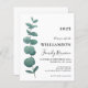 家族モダンエレガント懇親会予算招待状。この招待で家族を家族懇親会に集スタイリッシュめる。タイポグラフィとシンプル共に水色のユーカリを備えエレガントている。オリジナル水彩©ミケーレ・デイヴィス。
