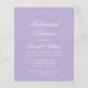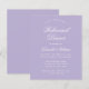 色シンプル付きリハーサルモダンディナー招待状:ラベンダー(薄紫色)。ラベンダーの背景に白い文字が付いているだけだ。「リハーサルディナー」の言葉と名前は書書書にエレガント記載されている。