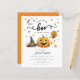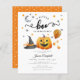 小さなブハロウィーンのカボチャの赤ちゃんシャワーの招待。ハロウモダンンをテーマにしたデザインでブーパーティーを!カボチャ、魔女の帽子、風船、キャンディコーン、月と星を備えた赤ちゃんシャワー招待。この招待状は素晴らし女の子と男の子シャワーのためだ!