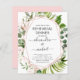 バジェットEucalyptus緑のバラ金ゴールド-赤面ピンク幾何学植物色の春の結婚式リハーサル白い背景のディナー招待状 – 特別な結婚式の日のお祝いのための植物性のタイポグラフィと緑とモダン植物性の葉美しくスクリプトのを含むエレガント。