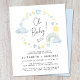 キュートお洒落で予算の多いフレンドリー男の赤ちゃんのカップルが、虹と太陽とハートと星と月と雲のboho青と黄色の水の色と書き物のスクリプトでスタイリッシュ"ああベビー!"を含むシャワー招待。母親と父親の名前とシャワー詳細の名前を追加シンプルモダンタイポグラフィ。