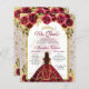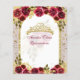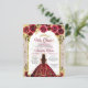 金ゴールドエレガントグリッターアーチとフローラプリンセスドレス15th誕生日キンセアニェラ招待状。