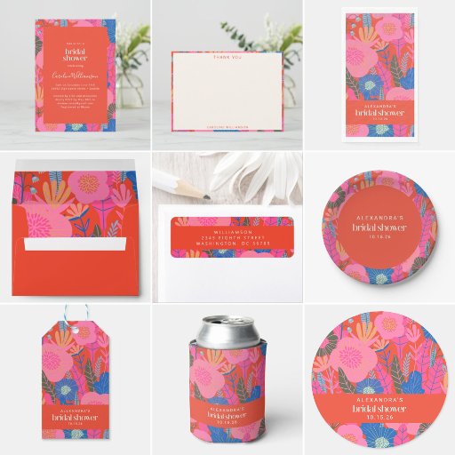 バジェットカラフルレッドボホフローラブスタイリッシュライダルシャワー招待