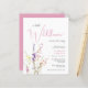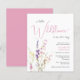 予算のエレガント中では、女の子のシャワーの招待フレンドリーは、"小さな野生の花が彼女の道に行く"ソフトグレーのタイポグラフィとモダン、ピンクのスクリプトを柔らかい灰色の消え字と、豪華な紫、ピンクと黄色の野生の花の水色の花束をの混合書。