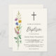 このバプテスマの招待飾は、ソフトクリームの背景にワイルドフラワーと十字架で。簡単にカスタマイズ可能オリジナル水彩©ミケーレ・デイヴィス。
