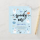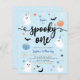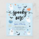 予算は不気味1かわいい赤ちゃんブルー幽霊ハロウィーン1歳の誕生日パーティの招待状。モダン不気味なパーティーのためのハロウィーンをテーマにしたデザイン!この誕生日の招待には、スパイダーのくもの巣、幽霊、カボチャ、こうもり、クモ、離れ、コーン、星やデイジーが含まれる。この招待状は素晴らし小僧のためだ!