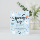 1つの不気味かわいい幽霊ハロウィーン1歳のパーティの招待状。モダン不気味なパーティーのためのハロウィーンをテーマにしたデザイン!この誕生日の招待には、スパイダーのくもの巣、幽霊、カボチャ、こうもり、クモ、離れ、キャンディーコーン、スターとデイジーが含まれる。この招待状は素晴らし小僧のためだ!