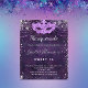 仮装エレガントの為に、甘い16、16歳の誕生日。紫色の背景色は、紫色の色は不均一である。銀飾のグリッターの塵と仮装の仮面を名前、年齢、およびパーティー詳細をカスタマイズして追加する。名前は手書文字のスタイルスクリプト