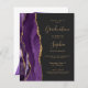 このトレンディー卒業式パーティーの招待状は、金ゴールドのハイライトと紫の色合いのアゲイトの水彩画のイメージをフェイク特徴とする。「Graduation」と卒業生の名はエレガント、金ゴールド色の手書き文字で黒い背景に表示され、サンセリフや斜体のフォントのパーティー詳細と共に表示される。背面のサンプル画像を卒業生の縦写真に簡単に置き換える。
