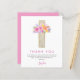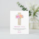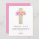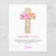 バジェットパステルピンク、オレンジと紫のフローラバラ花クロス植物水色宗教的な最初(1番目)聖なる聖餐式サンキューカード。