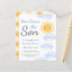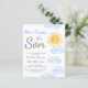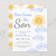 招待状の家族と友人は、この予算の男の子の赤ちゃんシャワーの招待と太陽をテーマの赤ちゃんシャワーに。文字「Here 来 The Son」を青いタイポグラフィにしスタイリッシュ、可愛い黄色の水色の太陽と雲を特徴としている。背中に飾は笑みを浮かべる。簡単にカスタマイズ可能オリジナル水彩©ミケーレ・デイヴィス。