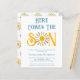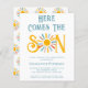 招待状の家族と友人の男の赤ちゃんの赤ちゃんシャワーこの太陽をテーマにした予算の赤ちゃんシャワーの招待。鮮やかな水色の太陽と青来色のレトロなタイポグラフィの文字「ここThe Son」を特徴としている。背中は飾日模様だ。簡単にカスタマイズ可能オリジナル水彩©ミケーレ・デイヴィス。