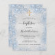 Aモダン、バエレガントプテスマ祝、男の赤ちゃんだ。銀フェイク金色の背景飾に青いグリッターの塵と金フェイク色のクロスを見せる。名前とパーティー・詳細のパーソナライズおよび追加黒い文字。