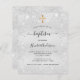 男のモダン子エレガントにも女の子にもミニマルな洗礼の招待。銀フェイク金色の背景飾にグリッターの粉をフェイク付けた。名前と詳細のパーソナライズおよび追加黒い文字。