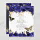 バジェットエレガントブルー金ゴールドフローラ蝶スウィート16招待状