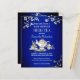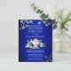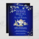 バジェット王室のブルーヴィンテージ素朴な水の色の高い茶のベビーシャワー招待状。