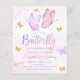 バジェット私たちの小さな蝶ピンク紫の金ゴールド女の子の誕生日の招待。