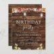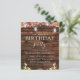 バジェット誕生日パーティー素朴ダークウッドの国のアウトドアブルゴーニュ、オレンジ、黄色のヒマワリとメイソンジャースとストリングライト秋または秋バースデーパーティ招待状にエレガントは、特別な誕生祝いのための美しくスクリプトタイポグラフィを含む。