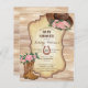 予算の素朴ヴィンテージは、ピンクの牡丹の水の感じ色の赤ちゃんシャワーの招待とカウボーイのブーツと帽子を見る。
