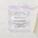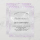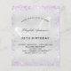 ミニマモダンルなエレガント誕生日の招待状。銀フェイク金色の背景飾に紫のグリッターの塵と透かしフェイクのようなバターライズ。名前と詳細をパーソナライズ結婚して追加する。黒い文字。