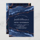30モダン歳スタイリッシュ(または任意の年齢)の誕生日パーティーのための魅力的で魅力的な招待。青とバラの金ゴールドを重ね、大理石の背景。名前は手書文字のスタイルスモダンクリプト付き。カスタマイズしてパーティー詳細を追加する。