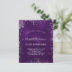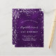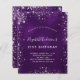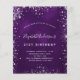 21モダン歳スタイリッシュ(または任意の年齢)の誕生日パーティーのための魅力的で魅力的な招待。深い紫の色の背景に銀フェイク色のグリッター粉。紫は色むらだ。名前は手書文字のスタイルスモダンクリプト付き。カスタマイズしてパーティー詳細を追加する。
