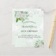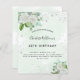 女モダン性の40スタイリッシュ(または任意の年齢)の誕生日パーティーのための魅力的で魅力的な招待。銀グリッターの塵と白い花模様と緑フェイクの水色の緑の背景。名前は黒い手書文字のモダンスタイルスクリプトで示す。名前、年齢、およびパーティー詳細をカスタマイズして追加する