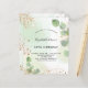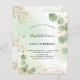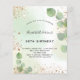 50エレガント歳(または任意の年齢)の誕生日パーティー。ユーカリの緑と飾金ゴールドのグリッターの塵と金フェイク色の水色の背景。パーソナライズ、名前とパーティー詳細。黒と金色の文字背面:緑の水色の背景