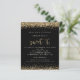 金ゴールドグリッタースウィート16ブラックパーティの招待状。予算フレンドリーは4.5インチx 5.6インチの代替品。セミグロス110 lbカード素材またはサテン仕上げ80 lbシンナー紙素材。封筒はオプションで追加できる。エレガント金ゴールドフェイクグリッター紙吹雪縁どは、クラシックの黒い背景の上と下に位置し、また背面に位置する。Sweet sixteenは手書きスタイルモダンで設定される。簡単に自分の文字の残りの部分をパーソナライズ。