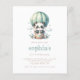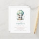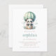 この可愛い最初の誕生日パーティーの招待は、雲とピンクの花に囲まれたミントな緑の熱気球に甘い水の色のパンダを特色とし、茶色のイタリックフォントで「私たち[name]の最初の誕生日パーティーに参加してください!」という言葉の上に。白い背景に茶色のサンセリフフォントの詳細とミント緑のスケッチレタリングで子供の名前でパーソナライズ。女の子のパンダ、冒険、旅行、または熱気球をテーマにした最初の誕生日パーティーに最適。
