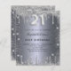 21モダン歳のスタイリッシュ誕生日パーティーへの魅力的な招待。銀フェイク色の背景、飾グリッターの塵。名前とパーティー・詳細のパーソナライズおよび追加21番はバ書ロンスタイルフォント、スクリプト付き。