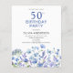 バジェット50th誕生日ブルーフローラ招待状