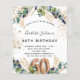 60歳の誕生日パーティー。ユーカリの飾緑と黄金のが白い背葉景。ゴールデンフェイクグリッタースポット。名前と詳細をパーソナライズ結婚して追加する。黒と金色の文字60番はバ書ロンスタイルフォント。バック:白い背景と黄金のフェイクグリッタースポット。
