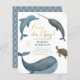 海をテーマにした赤ちゃんシャワーの招待状では、ターコイズ、グレー、ネイビーブルーの美しい色合いの手水色のホエー絵を描ル、ナウラル、イルカの海の下のシーンと緑と茶色の色調のウミガメを取り入れてい自然る。パーティー詳細は金ゴールドスクリプトレタリングの「Ahoy, it's a boy!」から始まり、母名の手書き大文字とイベントのタイポグラフィ情報で構成され書るモダン。日付と時刻が円スタンプ離れスタイルに表示される。右上と下の角離れには金ゴールドフェイクグリッター。あなたの小さな航海の男の子の来祝る近いにテーマのパーティーに最適!このデザインは可愛エレガントい。青い背景に魚や波はかりで測の模様と逆のカード。"クリックパーソナライズ"で、これらの招待状に対して、文字を感じ自由に連絡変更する。Zazzleの予算選択の一部として、このシートは標準の招待状サイズまたは紙品質ではない。このデザインもしは、私たちの店で見つけることができる招待カード上で、またはあなたの選択の製品に転送するためにZazzle Make Machineを使用して使用する。私たちの店を訪問してもっとデザイン!