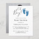 この予算スタイリッシュベビーシャワー招待状は飾可愛いベビーの足と青いグリッターと言葉で、ああ男の子!背面には自分で交換できる写真がある。簡単にカスタマイズ可能デザインツールを使用して、文字のサイズ、スタイル、色を変更する。