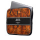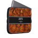 バスケットボールをテーマにしたラップトップスリーブは、バスケットボールの抽象的なオーバーサイズのイメージを覆すランダムな3次元のパターンで配置された様々なサイズのバスケットボールの束を特徴とすカスタマイズる。コーチの名前、チームの名前、スポーツのシーズン/年を、厚く水平方向に向けたブラックの文字でストライプ