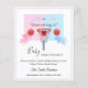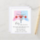 予算の赤ん坊シャワーまたはジェンダーが招待を明らかにする。白い背景のデザインは、ピンクとブルーのバスケットボールフープで構成され、オレンジ色の入り口のバスケットが青とピンクの煙に噴エレガントき出す。タイポグラフィ読文字は何になるベビー?完全なイベントと詳細を前面連絡と背面に追加してパーソナライズ。