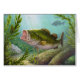 草と砂の魔法の近くの場所で大きな口のベースの魚きらめく。アマンダ・ディールによる油彩画,パキスドミノデザイン.
