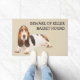 可愛いおもしろいバセット・ハウンド犬のイメージと言葉のキラーのバセット・ハウンドのおもしろい注意を持つフロントドア歓迎マット。スマイルでユーモアのあるお客様や来場者を迎える家のドアマットとして設計。