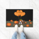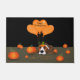 このデザインはバセット・ハウンド犬がカボチャや風船に囲まれた帽子の衣装を着ている。