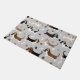 可愛いバセットハウンド犬の茶色、黒、白、レモンのコートと散在する犬の骨と手でおもしろい犬のパターンをプリント。