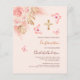 桃の背景。飾バラ金ゴールドとピンクの花模様、バラ、パンパスグラス、蝶と黄金の十字架と。名前と詳細・詳細のパーソナライズおよび追加背中:桃の色の背景と蝶。1枚= 1枚の招待状を印刷したエッジからエッジ