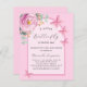 アーチ付きピンクの背景。ピンク飾のフローラ、バラの花、緑の水色のユーカリの緑と蝶。カスタマイズし、お母さんの名前を追加するbeおよびパーティー詳細。文字: A Little Butterfly is way.1枚= 1枚の招待状を印刷したエッジからエッジ