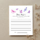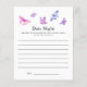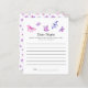と蝶エレガントテーマブライダル/ウェディングシャワー日付の夜のアドバイスカードのピンクと紫の蝶の水色のイラストレーションを特徴とする。シャワー頼中にカードを記入するゲスト。形見素晴らしだ!